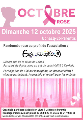 Alors, que vous soyez sportif ou amateur de promenades tranquilles, que vous soyez dans les villes ou les villages des Landes intérieures, il y a forcément un événement près de chez vous ce mois-ci. Habillez-vous de rose si le coeur vous en dit, rejoignez les marches, les foulées ou les ateliers et faites partie de ce mouvement de solidarité !