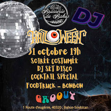 Au programme :  soirée costumée, Dj set disco, Cocktail spécial, Food Truck, bonbons