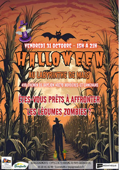 Vendredi 31 octobre HALLOWEEN AU LABYRINTHE DE MAÏS – Bordères-et-Lamensans – à partir de 15h